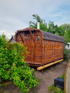 Мобильная баня-бочка с каждым днем набирает все большую популярность благодаря её возможной транспортировки куда угодно: на отдых в лесу, на рыбалку или на побережье реки