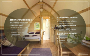 Такой кемпинг дом удобное и практичное решение для дачного использования или обустройства загородных баз отдыха. Изготовлен из хвойных пород древесины. Кровля из мягкой черепицы и цельный навес по всему фасаду изделия обеспечивают защиту от осадков. Домик включает в себя две спальные комнаты с четырьмя кроватями. По вашему желанию одно из помещений можно оборудовать под душевую зону с санузлом. Для удобства пользования в домике находится навесной столик, полка и вешалка. Входная дверь изготовлена из двойного стеклопакета.