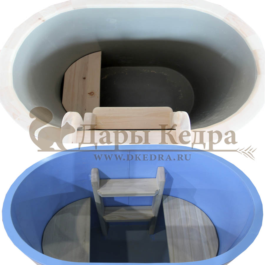 Купель двойная овальная гладкая столярная из кедра с пластиковой вставкой