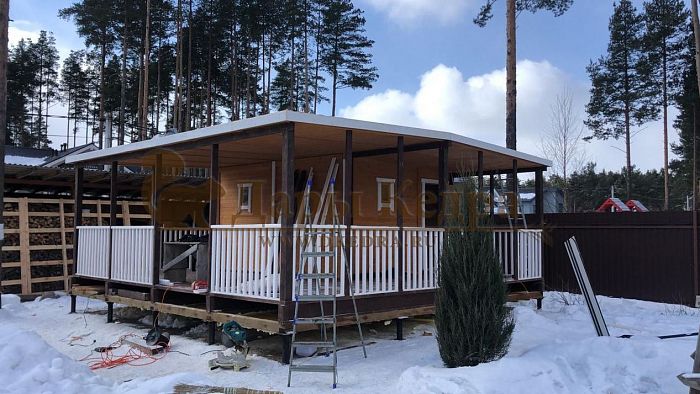Каркасно-щитовая баня из кедра «Макси» с верандой
