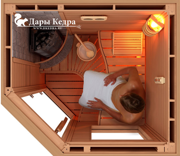 Пятиместная (семиместная) угловая инфракрасная сауна кабина из кедра с карбоновыми излучателями