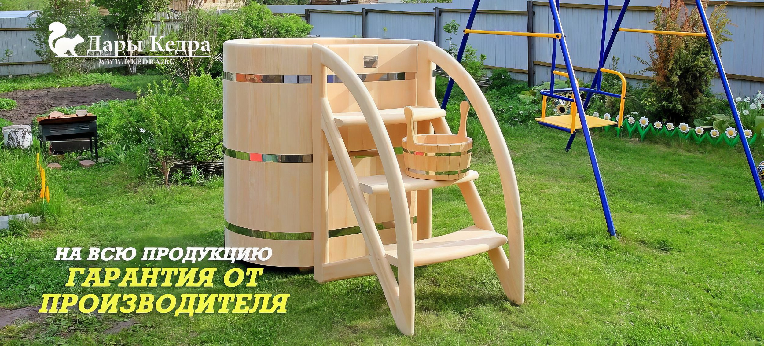 Для изготовления нашей продукции мы выбрали кедр и дуб. Эти крепкие породы дерева долговечны: не гниют, не повреждаются жучками, влагонепроницаемы, мало усыхают, а также очень полезны для здоровья за счет выделяемых в воду фитонцидов. Выбор древесины зависит от необходимого терапевтического эффекта.
