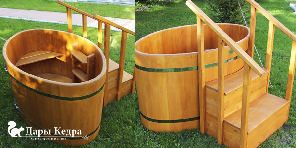 Конструируя модели, мы продумываем всё до мелочей. Для безопасного погружения и комфорта внутри есть сиденье, лестницы предусмотрены, как снаружи, так и внутри. Купель поставляется в разобранном или готовом виде. Разборные части легко соединяются. При разбухании или усыхании дерева натяжение обручей регулируется с помощью натяжных болтов. К изделию прилагается подробная инструкция по уходу за древесиной.