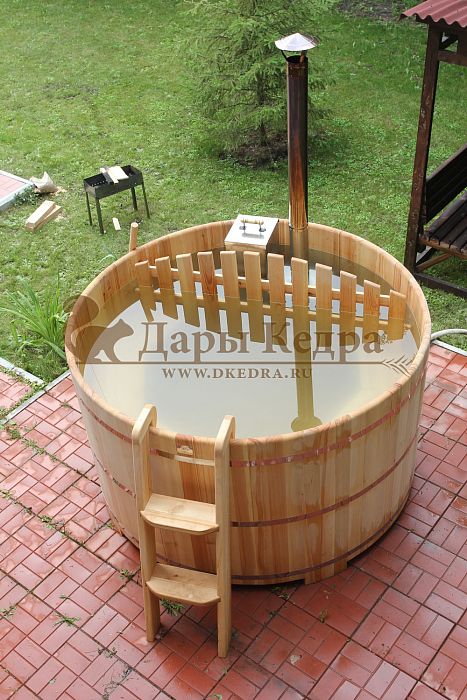 Купель из алтайского кедра укрепляет здоровье, повышает иммунитет благодаря фитонцидам, которые выделяются в воду и воздух. Неповторимый кедровый аромат вы будете ощущать на протяжении всей банной процедуры. Кедр — дерево твердой породы, не боится влаги, жучков, оно очень прочное, а значит устойчивое к условиям внешней агрессивной среды. Купель с дровяной печью подойдёт для дома и дачи. На открытом воздухе в любую погоду (даже зимой) она сохранит температуру воды теплой, комфортной для процедур благодаря дровяной печи.