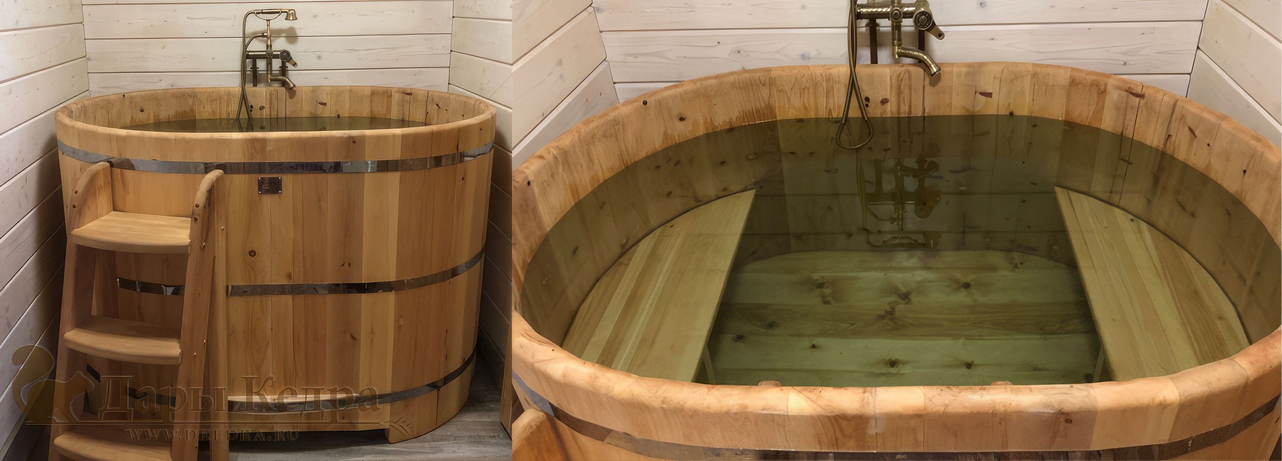 Купель двойная овальная гладкая столярная из кедра с пластиковой вставкой